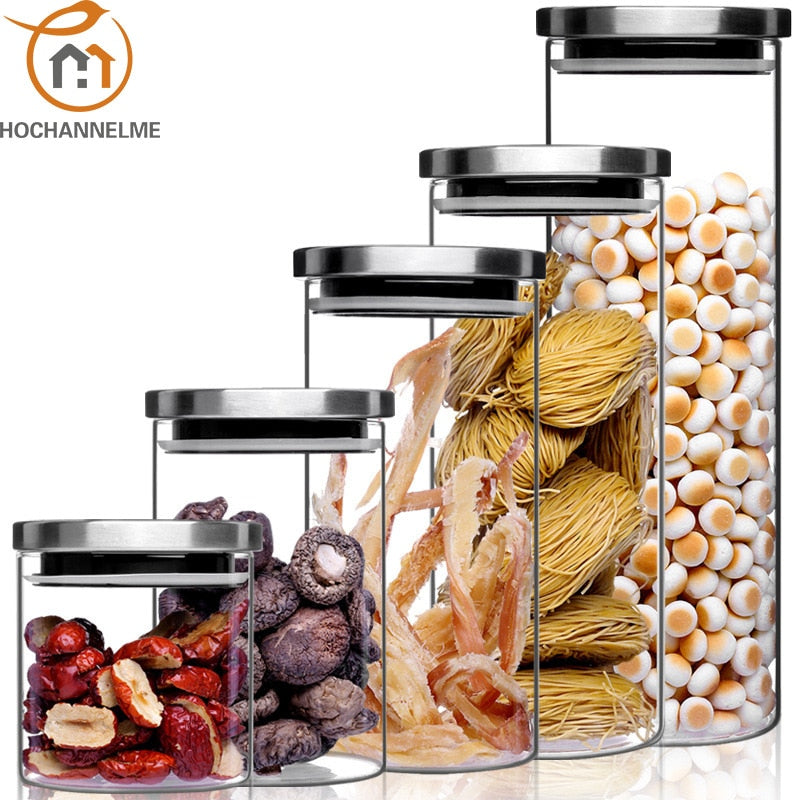 Glass Jar Container with Stainless Steel Cover for Cereals, Spices, Coffee etc